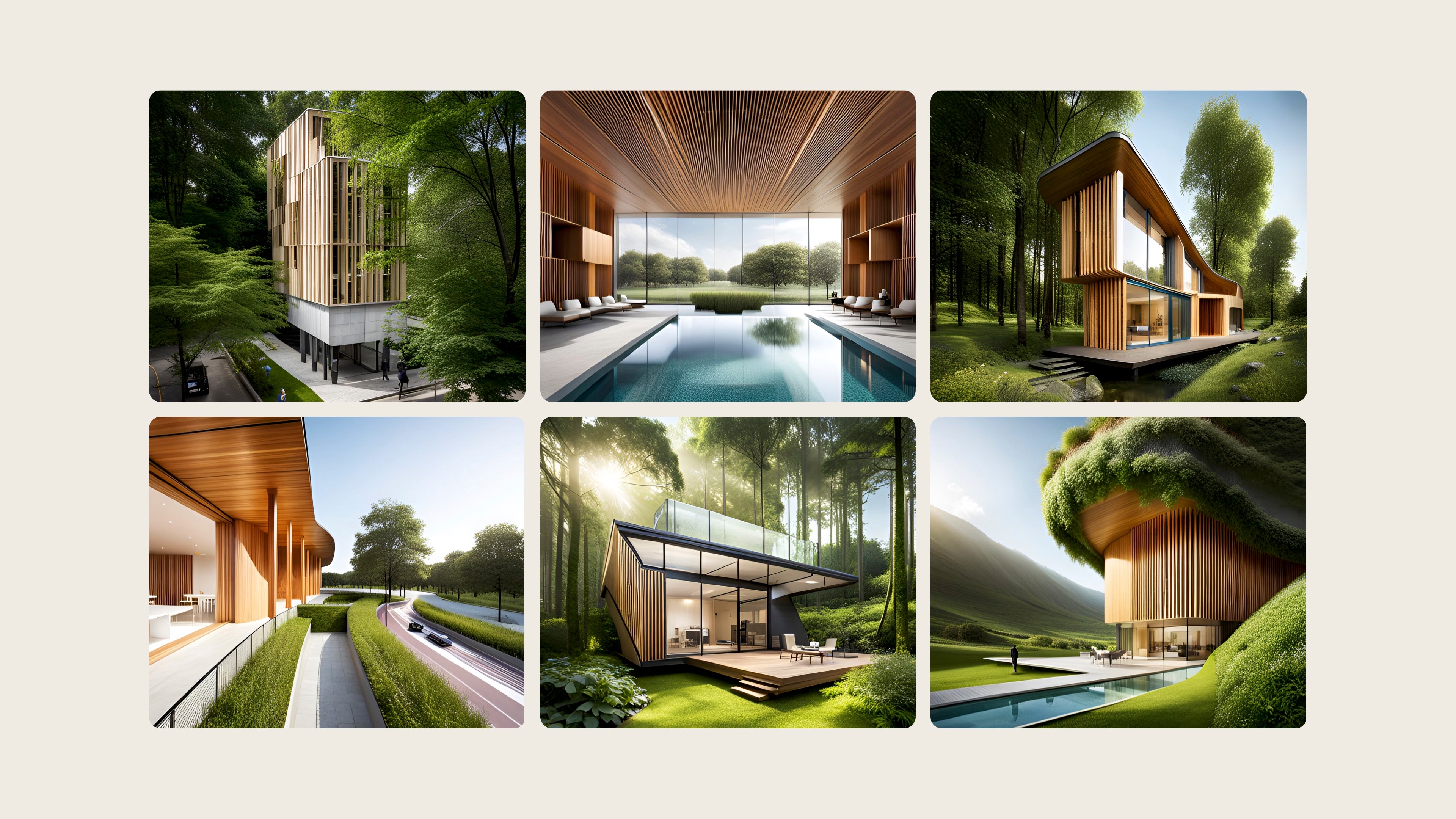 Mood boards are one of the most effective ways to brainstorm a visual style and you can generate these easily with or without text. In this example, an architect wants to show her clients a range of modernist styles but doesn't want to be hampered by copy descriptions. Images can also be edited if she wants Tome to try again and tiles can be re-ordered or removed altogether.