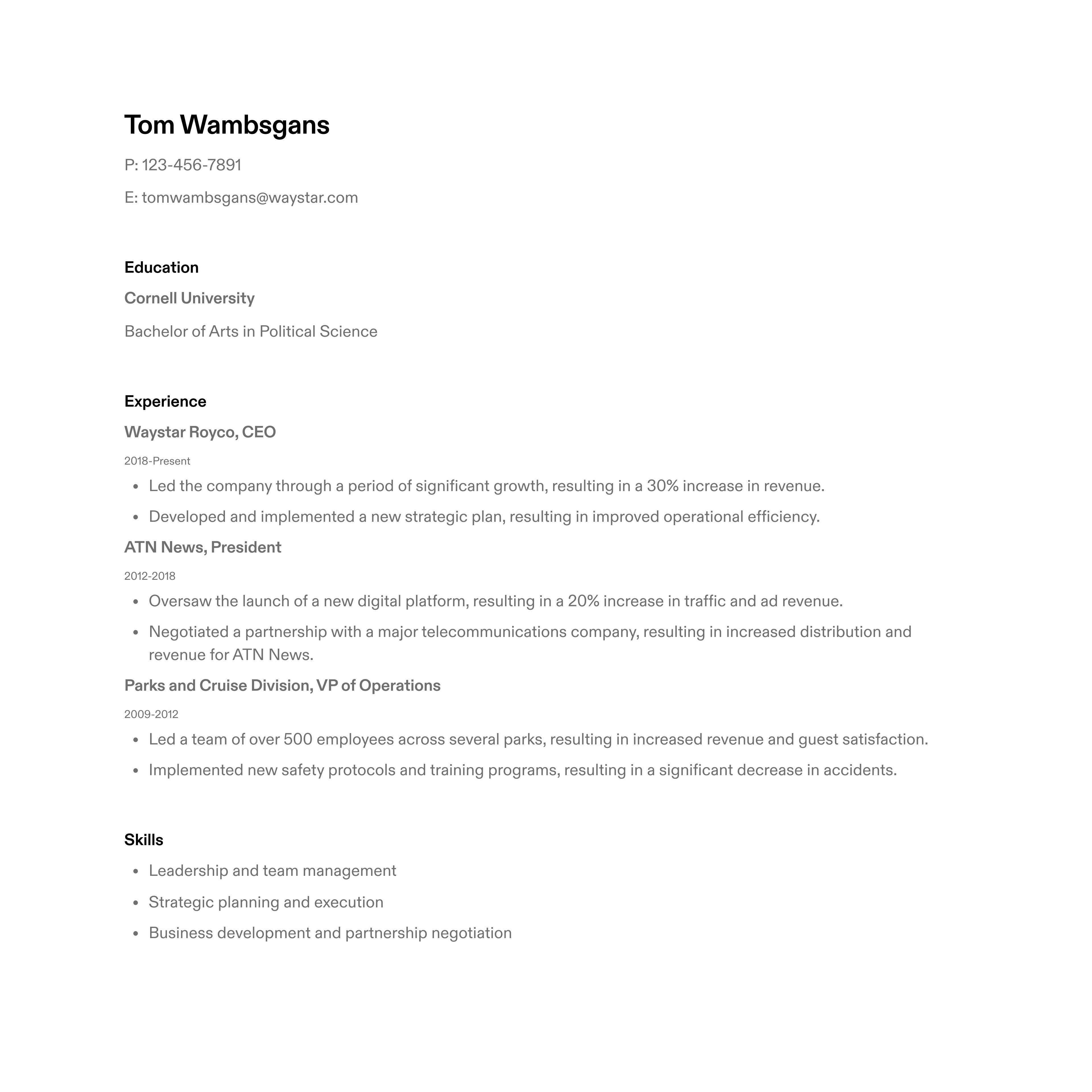 Tom's personal details, education and professional experience have been organized into a digestible resume format.
