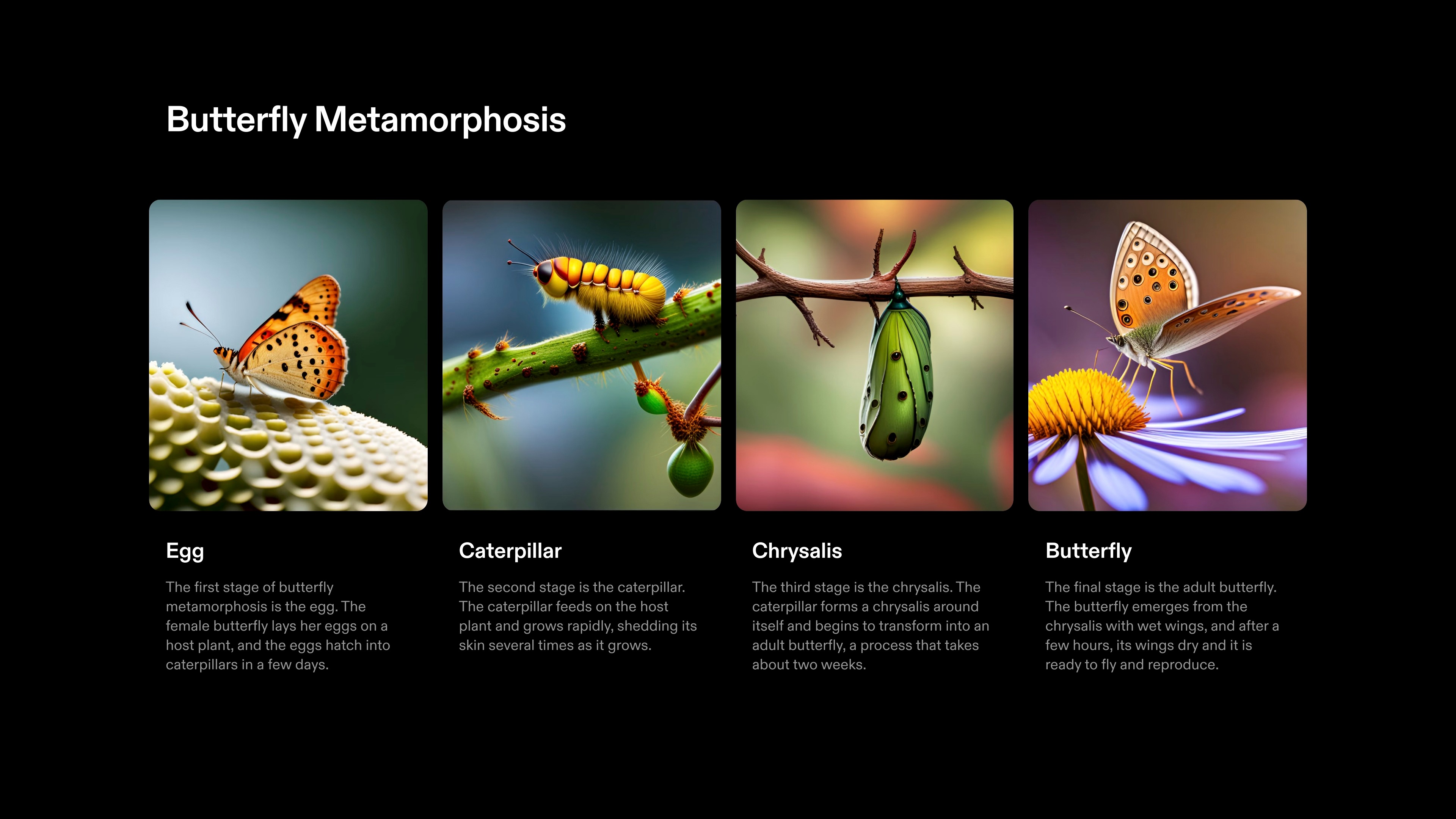 In just two words, Tome reveals all four stages of a butterfly's metamorphosis cycle in perfect chronologic order. The gorgeous images match each phase and if you're not digging the image styles, you can Try again. Maybe your students respond better to comic book style art? Play and see what happens.