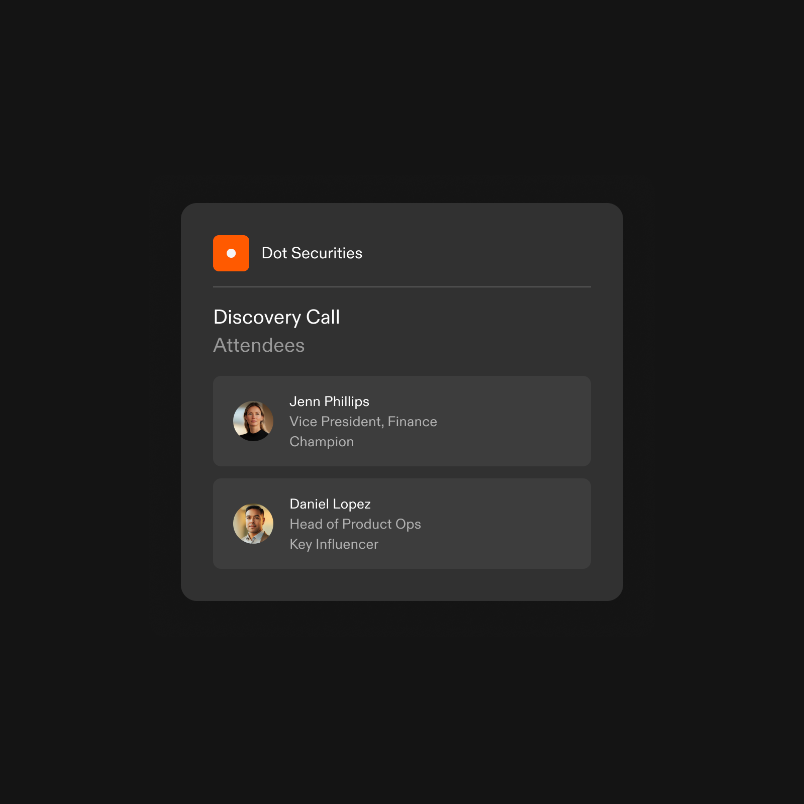 Map out how to talk to each individual on the call with information about them, delivered straight to you.