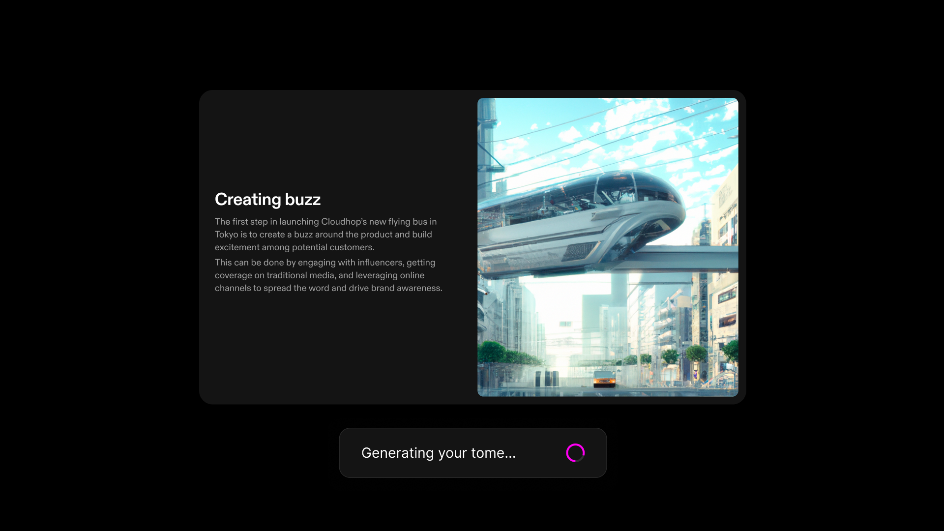 Use the power of AI to create entire stories and presentations from scratch, or add new pages to an existing tome. These new features are now in beta for everyone.
