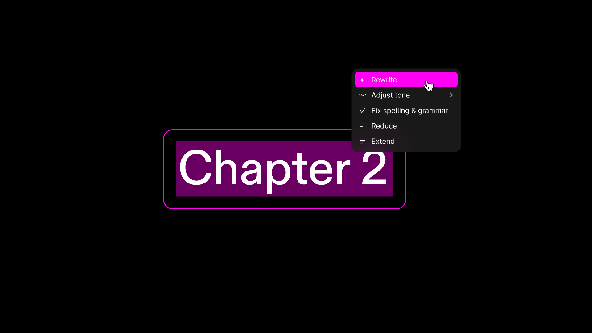 - Highlight text and click the ‘Rewrite’ button to have Tome's AI rewrite copy for you. You can edit the new text or revert to the original text using ⌘Z (or Ctrl-Z for Windows).