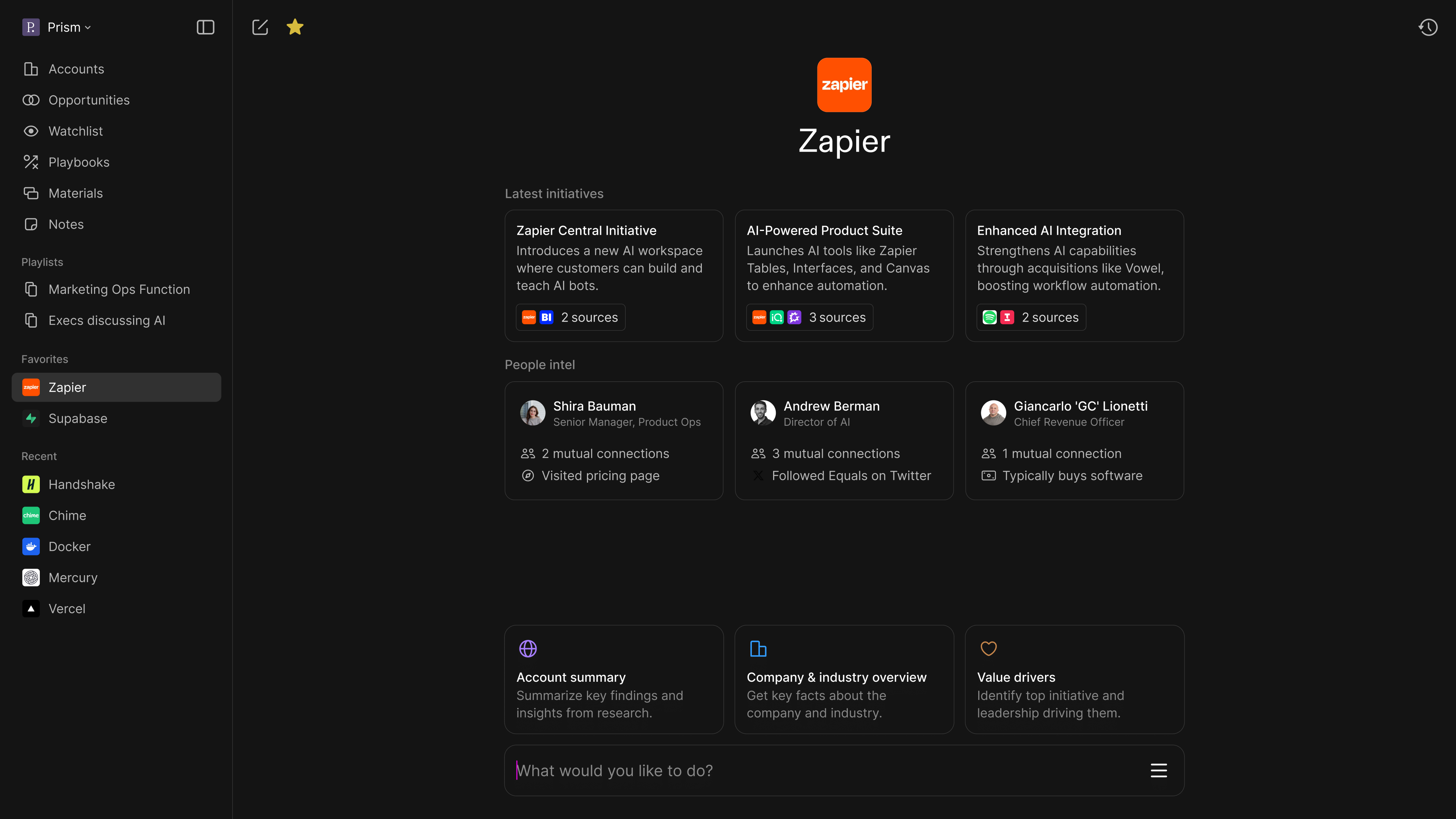 By using a large context window and a model with extensive reasoning capability, we’re able to read thousands of documents and look for patterns. Combine that with web crawling and data enrichment, and we’re able to extract insights that would’ve taken days of research and effort in the past, that no sales rep has the time to do effectively.