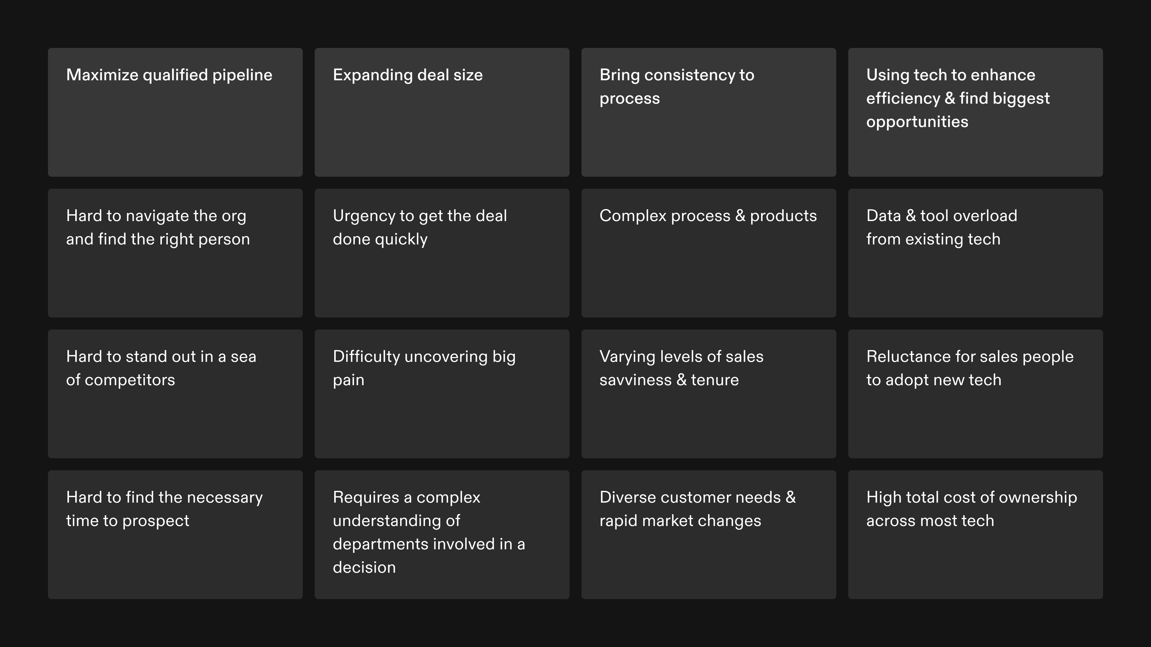We spent a considerable amount of time interviewing AEs to understand what's preventing them from nailing their leaders' priorities, and here's what we learned: