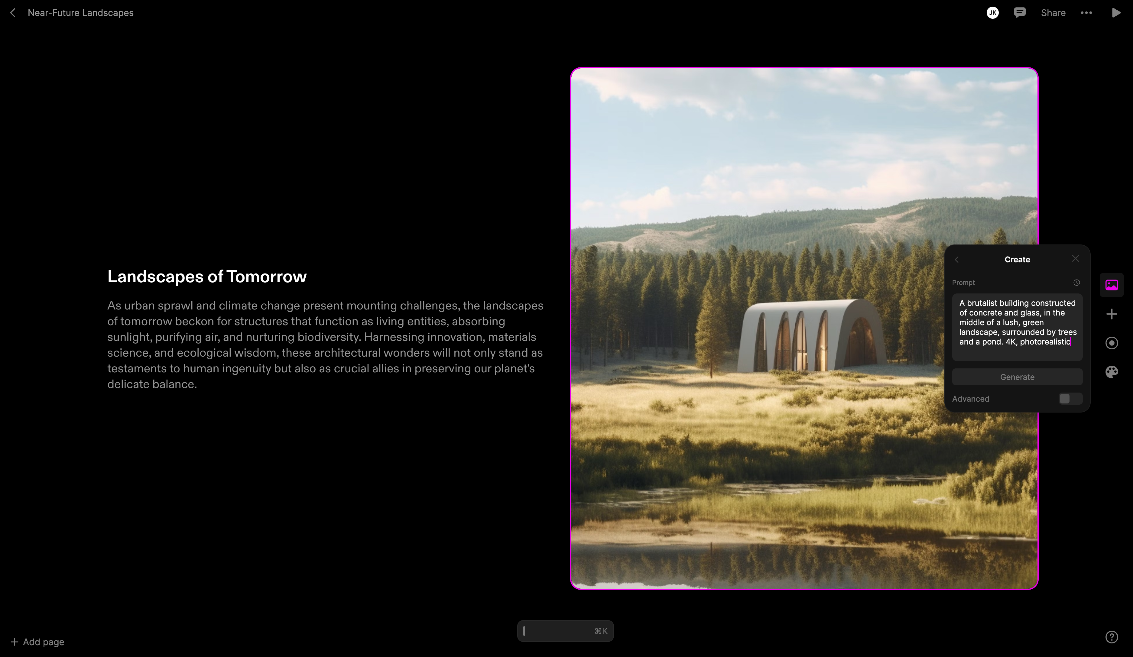 - Add your page prompt and hit enter.
