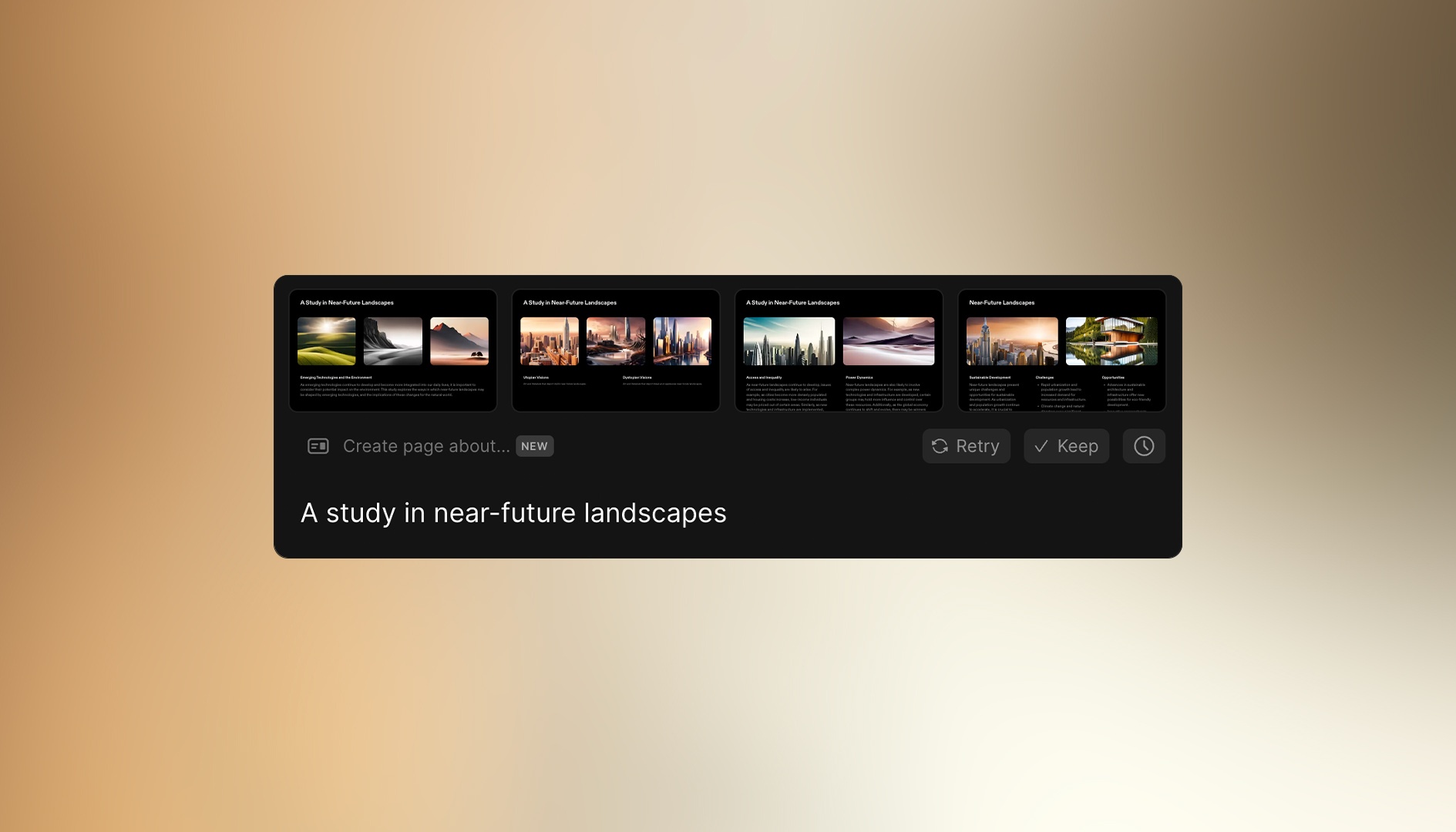 Simple and seamless. You'll notice that you're not bombarded with a ton of references as choices because Tome's AI has done the work for you—more on that next.